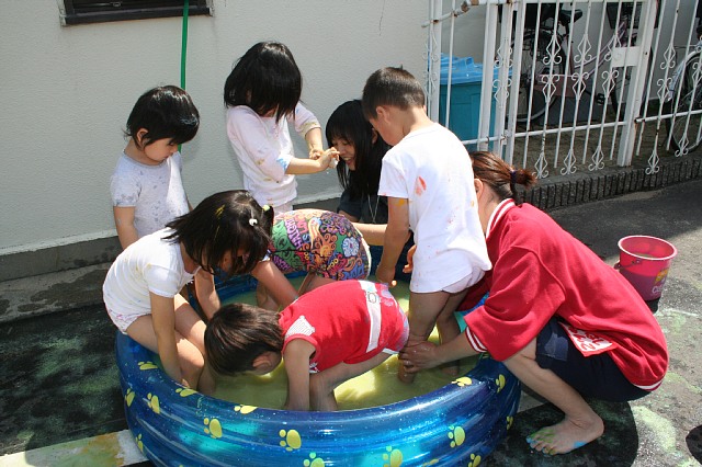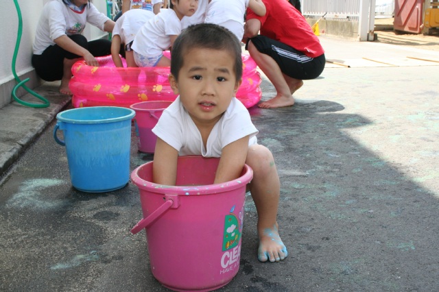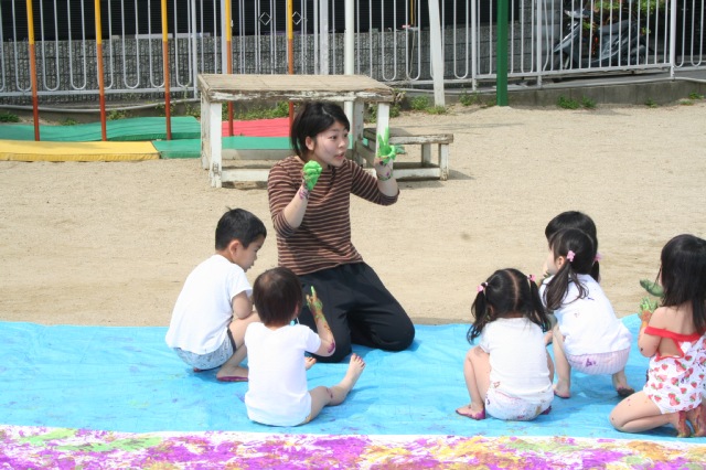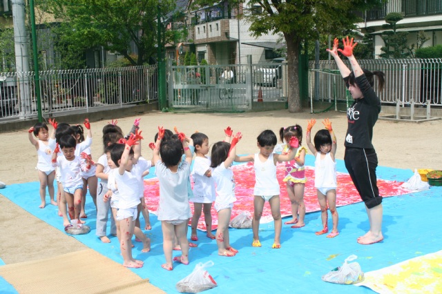 昨日とかわって気持ちのいい晴天でした。カラッとして心地よい風が吹いているだけで、子どもたちの表情や動きが違うような気がしました。のびやかでイライラしていないような、園の雰囲気が雨の日とは大違いです。子どもたちのの服装も半そで半ズボンの子が増えてきました。年少さんはまだままごとなどが多いですが、これからどんどんダイナミックに遊べるようになって、年中・年長さんに負けないくらいビショビショになることだろうなと思うと頼もしく感じます。 |
