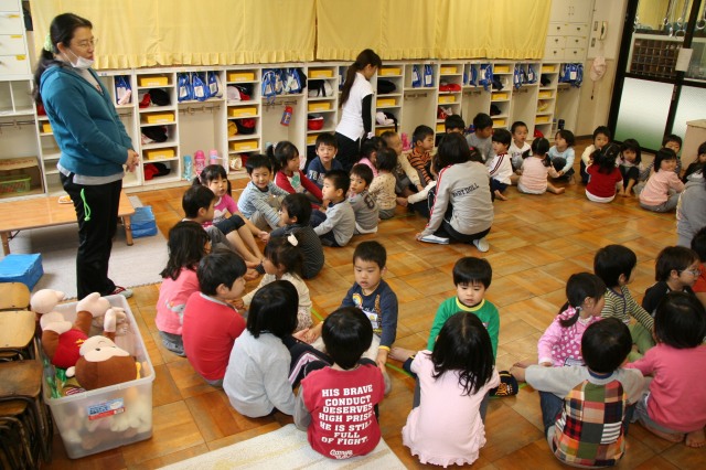 活動が始まるまでに(静かになって話しをきくまでに)なかなか時間がかかります。手遊びをするとだんだん気付いて、集中してくれるのですか、話から始めようとすると、それぞれが口々に自分の事を言い出すので収集がつきません。それだけ私の言葉に対して反応してくれる=興味をもってきいている、ということなのかな!?と思うようにしていますが、少しずつ発言する事ときく事の両方が判断していけるようになるといいなと思っています。子ども同士のかかわりでは、まだ(並行)あそびの子も多く見かけますので、かかわって→主張をし合って→きくという段階を経ていくことと思います。上手にお話をきけるようになる頃には子ども同士の関係もきっと成長していることだろうなと思っています。 |