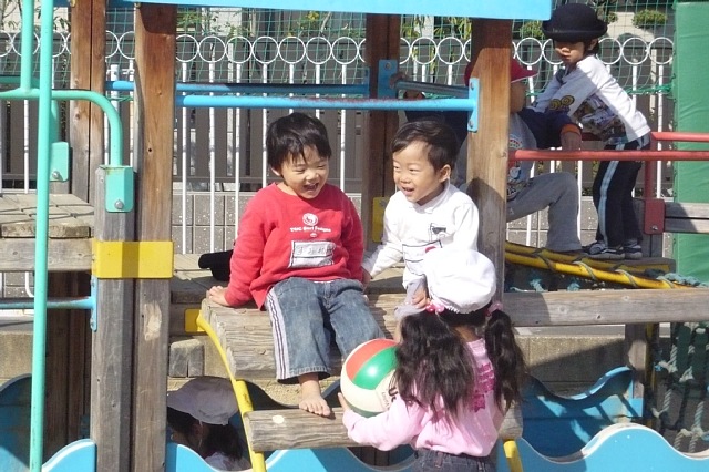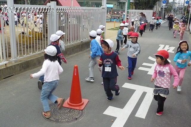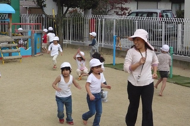 今日は作品展のサーカス作りの後に時間があったので子ども達に「何しよっか?」と考えていると「外行こう!!」という案が出たので、急遽外遊びにしました。「色おにごっこ」か「大根おにごっこ」の多数決で「大根おにごっこ」をすることになりました。最近、お部屋の中で活動することが多かったので、まずは準備体操とジョギングで体を慣らしてからスタートです。運動場にかわいらしい大根がたくさん出来ては抜かれを大忙し!!中盤くらいから「先生、暑い〜!!脱いでいい?」「裸足になってもいい?」と子ども達はゲームが進むにつれ、どんどん真夏の格好に…。11月下旬の光景とは思えないです。気付けばあっという間に給食の時間です。「お部屋帰ろっか」の声に大ブーイングを浴びながら、お部屋に戻りました。久しぶりの外あそびに子ども達は大ハッスルできたようでした。そんな様子を見て行事のため保育が一定になってしまっていた事に深く反省しましました。少しの時間でもリフレッシュできる時間を確保できるよう心掛けたいと思います。 |
