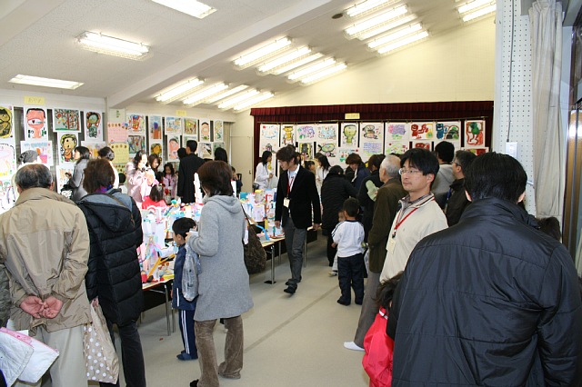 今日は作品展がありました。おうちの手をひっぱってすみれ組の部屋へ入ってきた子ども達はごきげんでした。入ってくるなり、まずはとりをさがして、おうちの人は必死になって絵をさがしていました。「上手にできたやん」とほめられているみんなの顔を見ているとこちらまでうれしくなりました。とりを作るのに何日もかかって部屋中ボンドだらけになったりして大変でしたが、ほめられてみんなの満足そうな顔をみるとみんなと一緒に頑張ってよかったなとしみじみ思いました。 |