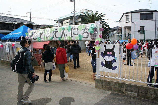 みんなの頑張りを披露する日がやって来ました。次々にくるみんなに、ごほうびのプレゼントを渡しました。お家の人、おじいちゃんおばあちゃん達に、自分の絵や作品を「こっち来て!これこれ!」と自慢げに見せている子ども達。おうちの方も「すご〜い!上手やん!」「頑張ったね〜」としっかり褒めて下さり写真もたくさん撮っておられました。「家でもジャングル作りの話をしているんですよ」とか「最近物を作ったり描いたりする事が多いんです」と言っていただいた事が本当に嬉しく、みんな楽しんで取り組んでいたんだな〜と思います。昨年のかわいらしい作品からの一年の成長、また今年入園してきた子にとっては“こんなことをやってるんだよ”とお家の人にしっかり伝わったように思います。本当に嬉しくみんな楽しんで取り組んでくれていたんだな〜と思います。本当に子ども達はよく頑張りました。みんなの創造力には驚かされっぱなしでとても楽しかったです。運動場では母の会の皆様やクラス委員さんによってすごく楽しい縁日が行われていました。本当にありがとうございました。子ども達にとってとてもステキな一日になったと思います。午後からの同窓会は成長した元ひまわりぐみの子ども達に会え、楽しい時間を過ごすことが出来ました。テンションがかなり高い子どもたちでしたが付き添って下さった先生方のおかげで無事に終えることが出来ました。本当にありがとうございました。 |