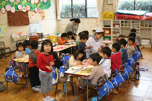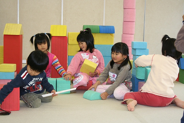 今日は21人で年長が半分以上いたので片谷先生の提案で、おやつの前はホールでおもいっきり遊ぶ事にしました。年長さんが多いと遊び方も大胆でちょっとヒヤヒヤする場面もありました。おやつのあとはいつものようにさくらの部屋でゆっくり遊びました。さっき体を使って遊んだせいか今度はお絵かきが人気で座って落ちついて遊んでいました。 |