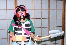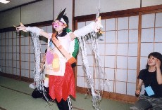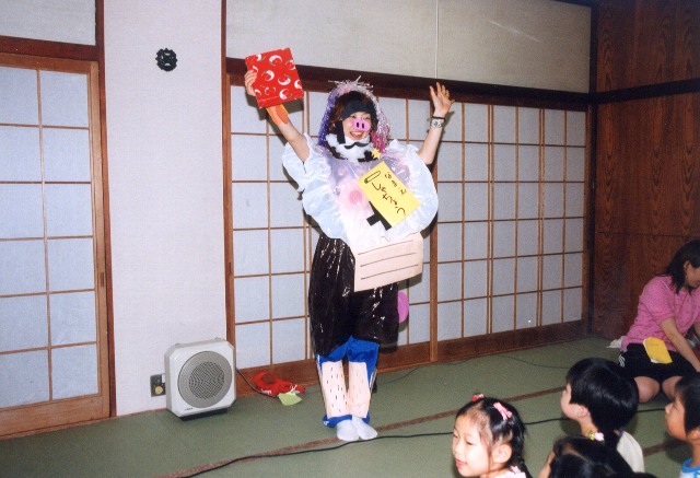 今日は、どきどきわくわくのお泊り保育の日です。ニコニコ顔で「おはよ〜」と部屋に入ってくる子もいれば、不安な表情を浮かべて入ってくる子もいました。そんな子ども達もあやめ池遊園地の乗り物に乗る頃には、目がキラキラと輝き笑顔でいっぱいでした。運良くドラえもんに会う事も出来ました。グーしか出せないドラえもんとジャンケンをしたのですが、ジャンケンポィ!と出した子ども達の手を見てみるとグーやチョキを出している子が…。素直な子ども達の気持ちをかわいらしく思いました。雨が降っていましたが、昼からはドラえもん館でしたので、雨の心配もせず、ゆっくり見る事が出来ました。思いっきり遊んだ遊園地を離れ、高円山ホテルへ。みんなで入ったおフロは、泳いだり水をかけたり、まるでプール遊びのようです。残念ながら雨のためキャンプファイヤーは出来ませんでしたが、歌をうたったり、子ども達が私に服や飾りを付けてくれるファッションショーがあったり、先生達の劇を見たり、笑い声が絶えませんでした。一杯遊んだひまわり組の子ども達、少しさみしくて眠れない子もいましたが、ほとんどの子どもはぐっすり。あっちへコロコロ、こっちへコロコロしながらもよく眠っていました。私も子ども達と同じ初めてのおとまり保育、すごくいい思い出となったと思います。
