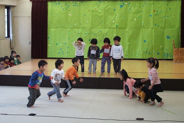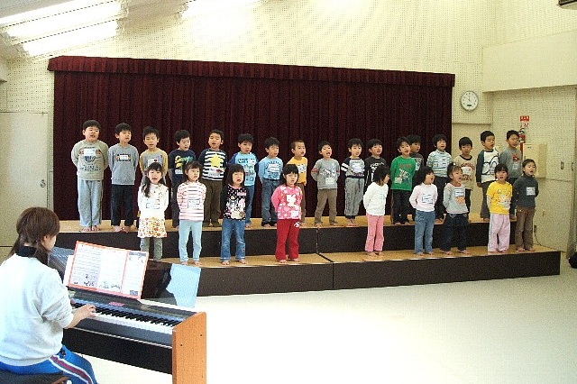 とうとう明日は、生活発表会です。寺内先生が欠席だったので2日間練習していなかった劇をしました。「先生のところまで聞こえるくらい大きな声でね」と言うと、みんな先生がいなくても頑張っていました。いつも間違いやすい所などを再度確認しました。そして明日のお話しをしました。今まで力を合わせて頑張ってきたことを話して、エイエイオー!と声を出して明日の約束をしました。 |