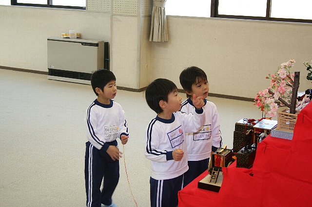 今日は連休明けで、子ども達のテンションが高くて驚いてしまいました。遊びはお部屋の中でピーターパンの劇が始まり、それぞれ好きな役になって楽しんでいました。設定保育になっても少し話を聞けなかったりする時がありましたが、「11月に話をした事忘れたかなぁ?」の一言で子ども達は「ハッ!」と気が付いたようです。発表会でみんな頑張っていたので、一人ずつ、ひざの上に乗せてあげて褒めてあげました。「何が一番楽しかった?」と聞くと劇が圧倒的で、次は合奏でした。もちろん「歌がきもちよく歌えた!いい歌やもん」と歌、そして全部楽しかった!と言ってくれる子もいました。子ども達が目を輝かせて発表会の話をする姿を見ていると嬉しかったです。その後、あと何日幼稚園で遊べるかを、全員でカレンダーを見ながら数えてみると、なんと今日を入れてあと19日でした。子ども達も「え〜っ」とビックリしていました。残り少ない日々を、お友だちと楽しく過ごして欲しいと思います。