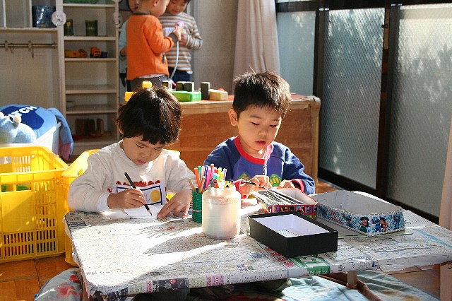 生活発表会も無事に終わり、久しぶりにのんびりした一日を過ごしました。子ども達も大きな行事を終え、しっかりした顔に見えました。今日は天気も良く暖かかったので、お外遊びに行く子どもが多く、一緒に私もおもいっきり遊びました。泥んこになりながら遊んでいる姿はみんな生き生きと楽しそうで、本来の子どもの一番輝いている姿に見えました。なんだかその姿を見て私もその場に一緒にいれて幸せな気持ちになりました。 |