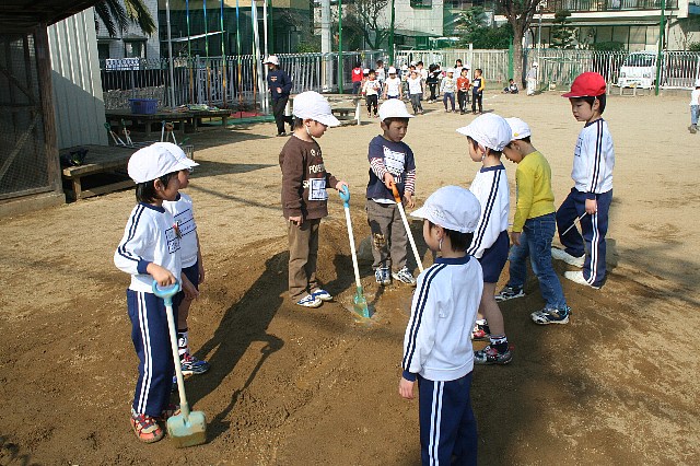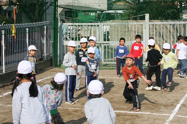 今日は春のような暖かい一日でした。そんな中、運動場ではたくさんの子ども達が思い思いの遊びを楽しんでいました。特に年長組はドッヂボールを朝からしていました。クラスは関係なくコートを書いてやりたいと思う子ども達が集まり、真ん中の線をはさんで並びます。人数を揃える為に向かい合ったお友だちと手をつないで人数調整をしました。その後は私が審判のような形で子ども達を見守っていました。ルールもすっかり理解し、当たって交代する時などもゲームを止めて、それを確認しながら進めていけてました。途中から年少さんの女の子が二人「一緒にしたい!」と言ってきたので、みんなに声を掛けてみると「うん、いいよ!」という返事が返ってきました。大丈夫かな?と思いながら様子を見ていると手をつないで一緒に逃げてあげたり、後ろに隠れるようにしてあげたりと本当に優しくしてあげていました。さすが年長さんだなぁ〜、もう一年生になるんだもんなぁ〜と感心し嬉しく思いました。 |