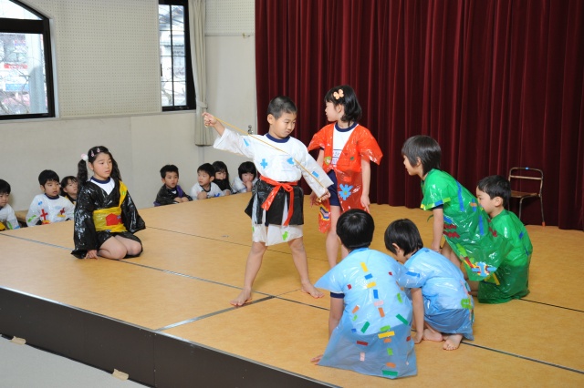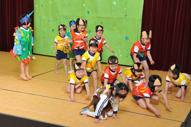 いよいよ発表会本番でした。ばら組はインフルエンザに悩まされ、やっと全員が揃い、初めての発表会を迎えました。みんなお家の人に届くよう大きな声で歌いきりました。劇もすっかりその動物になり切って、話しの中に入った演技をしていました。「どうぞのいす」の話しのように、ばら組さんが優しさをもって3月を終えたら嬉しいなと思いました。4月からこんなに成長してくれたのが一番嬉しい発表会でした。 |