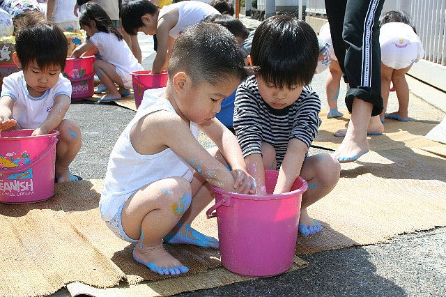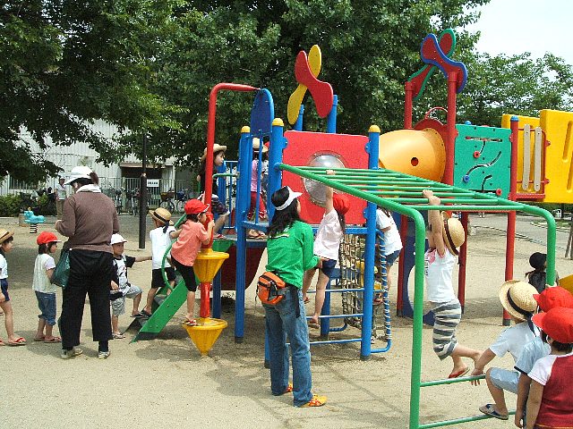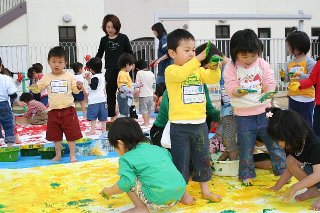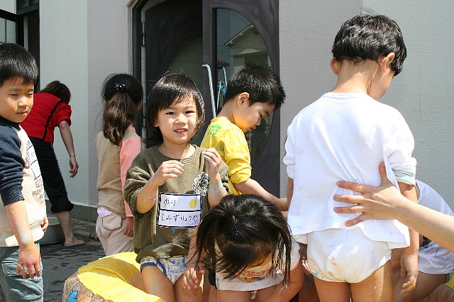 二回目のホームクラスに入らせていただきました。さすがに大きい組のお友だちは「先生、すみれ組やろ…“中田先生”」…と近寄ってきてくれて一緒にゲームをしたりして遊ぶことができました。お片づけも私より子ども達ののほうがよく理解できていて、これはここに…あれは…と私が悩んでいると「こうやって仕舞うねんで」と逆に教えてもらう状態でした。私も子どもたちにに負けないようにいろいろな面で早く覚えて慣れていくように努力したいと思います。お迎えの時間になっておうちの方がこられた時ほんとうに嬉しそうに表情がとてもかわいらしく感じられました。 |