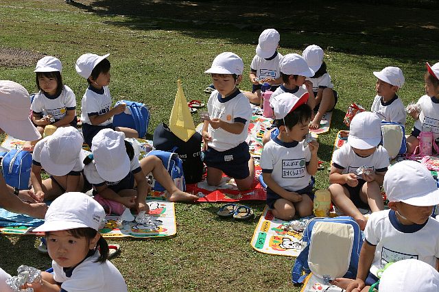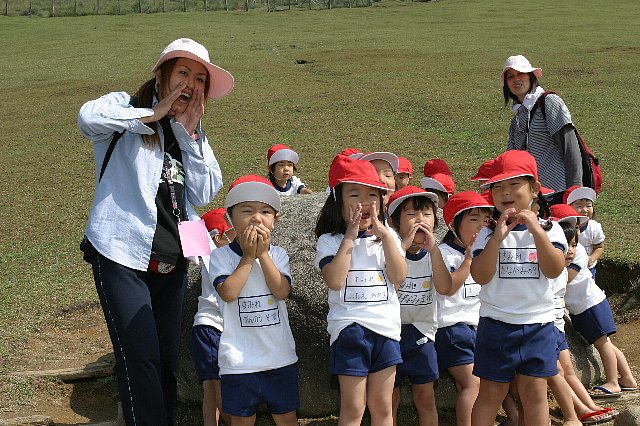 駐車場の関係で年長・中は大幅に、年少も乗降の場所が変更になりました。若草山の下のほうでウロウロして、すみっこのほうで小さなどんぐりや花をみつけて、お弁当を食べてと、それだけでしたが、年少さんにとってはバスに乗って出かけただけで十分に楽しいことだったようです。行く途中のバスの中ではトンネルに入っては「キャー!」出ては「キャー!」と、もう何もかもが、楽しいというような状態でした。お天気に恵まれて無事に帰ってこられて何よりでした。