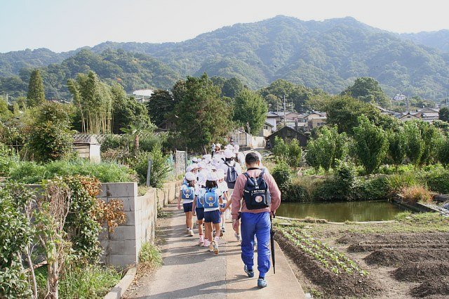 今日は少し肌寒かったですが、無事に十三峠超えに行く事ができました。白い服やウインドブレーカーをチェックしながら、軍手を配っていると、子ども達のテンションはドンドン上がり、「ドングリあるかなぁ!?」「奈良まで歩くぞー!」と張り切っていました。そして、エイエイオーをして出発。「のどかわいたぁー」などと文句も言わず頑張ってくれていましたが、山に入る手前で「スズメバチがいる」との情報が…私は不安でドキドキでした。サワガニのところは安全だったので、子ども達と一緒に入って楽しみましたが、そこからです。「ハチは子どもの声が嫌い」という事で静かに上へ。「しっかりついてきてや!」私が必死に言っていると「先生、し〜〜っ!」と怒られてしまい、子ども達の方が冷静だなぁと頼もしく思いました。さらに上へあがると「マムシがいた!」との情報が…。もう心臓ドキドキでしたが、全員無事に登り終える事が出来ました。カレーを食べている時は安心して涙が出そうでした。また1学期は「大丈夫か、この子たち…」と思っていましたが、半年で大きく成長してくれた子ども達に感動でした。付き添って下さった先生方、ありがとうございました。 |