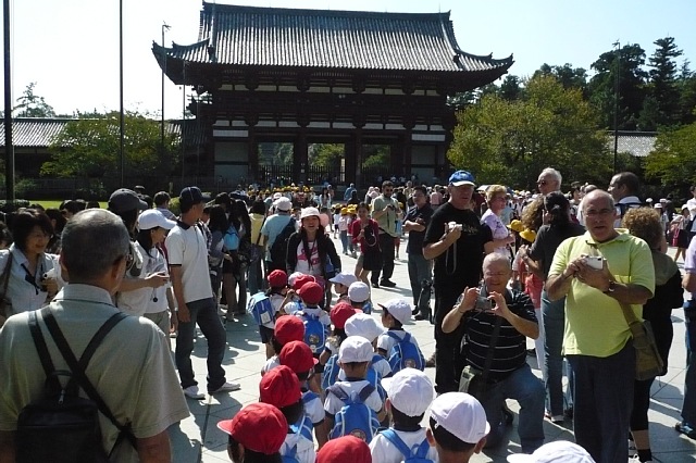晴天に恵まれ風もここちよく遠足にいってきました。バスの中でM脇先生が大仏クイズをして下さり、子ども達は正解を探そうと大はりきりで東大寺に向かいました。大仏さんだけでなく隣の仏像にも視線がいき、色々な発見をしてました。事前に興味もって見るのとだた何もなくボーッと見るのとではこんなにも違っているのかと導入の大切さを改めて感じました。