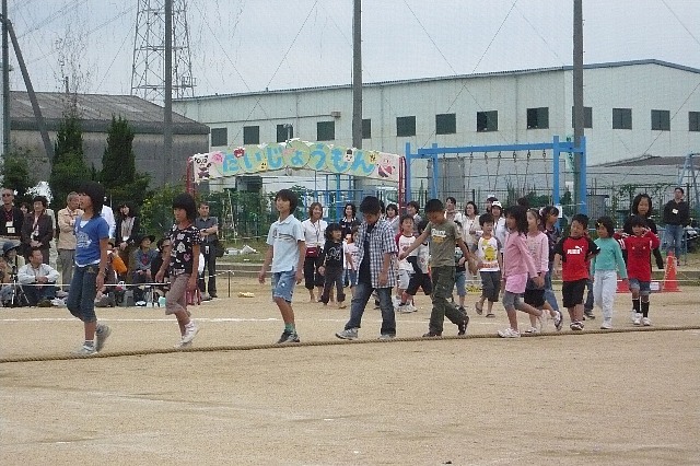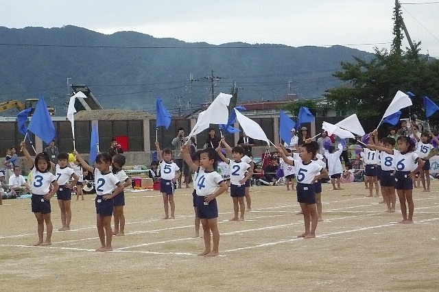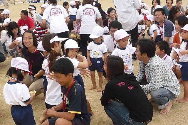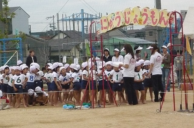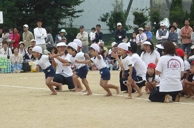 待ちに待った運動会!みんなの願いが通じたのか雨も降らず無事行うことができました。保護者の皆様にも見守られる中、今まで頑張った成果を存分に発揮できたと思います。玉入れではたんぽぽさんは2回目、入った玉が4個だけという年少さんならではの可愛らしいハプニング(?)もありましたが、“やっさい!やっさい!”ではとっても元気で可愛らしい姿を見せてくれました。年少さんは運動会は初めてという子が殆どだと思いますが、お母さま方にとっても初めて見る自分からはなれて子ども達だけで頑張る姿、成長した姿に感動された事と思います。いっぱい頑張ったみんなを、思いっきり誉めてあげて欲しいと思いました。 |