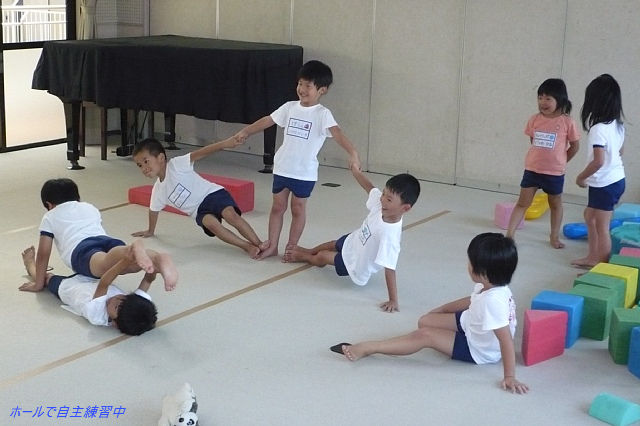 今月初めから毎日毎日練習を重ね、今日はいよいよ披露する日です。おうちの人の顔をみると、とても楽しみにしていたのが伝わってきました。年少・中さんはとてもかわいくって、仕上がりがどうこうというよりも、いるだけで十分です。年長さんの出し物を見ていると、年少・中さんの頃を思い出し、一人ひとりの成長を感じることができました。一生懸命練習し、辛かったこともあったかと思います。それでも負けずにやれたので今日があるのでしょう。最後にメダルありがとう!と言う顔が本当に嬉しそうでした。今まで毎日忙しくしてたので、しばらくはゆっくり遊んで欲しいです。 |