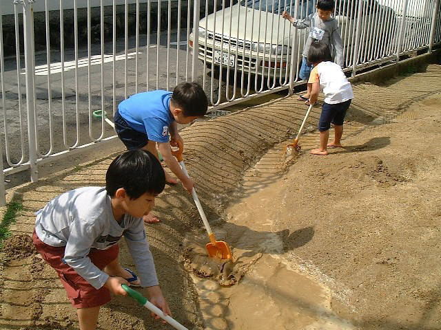 | 4月11日(木) 事務日誌・奥村 昨日泣いていなかった子が何人か泣いて登園してきました。何かわからず昨日は来たけれどやっぱりお母さんといるのがいい…。「お母さん〜」「おうちに帰る〜」と泣き声の大合唱が中庭に響いていました。何か遊ぶ方に誘ってあげると、すぅ〜っと忘れたかのように遊び出してくれる子もいるのですが、もう何を言ってもどんな事をしても泣きやまない子もいます。しばらくそーっとしておくしかありません。誰かが話しかけるとまた大声で泣き出すのです。毎年こうした事が繰り返されるのですが、しばらくするとあんなに泣いていたの?と思うほど活発に遊んでくれるようになってきます。今年も、昨年かなり長い間泣いていた年中さんの子が「先生なんでこの子こんなに泣いてるのん?」と不思議そうな顔で聞きにきていました。 |