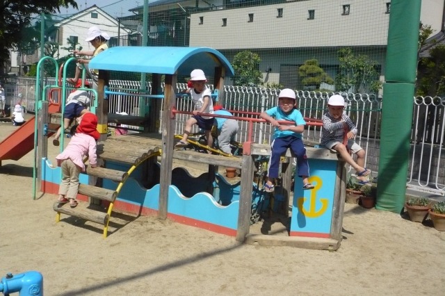 今日は、運動場の説明がありました。みんなお外に行くと気がまぎれるようで、すぐに、さーっと砂場や、すべり台に直行していました。特に年少さんには、すべり台が人気のようでした。今は本当に気持ちのいい時期で、泥んこになって帰って来る子たちもいて、さっそく思い切り遊んだなー!!という感じでした。 |