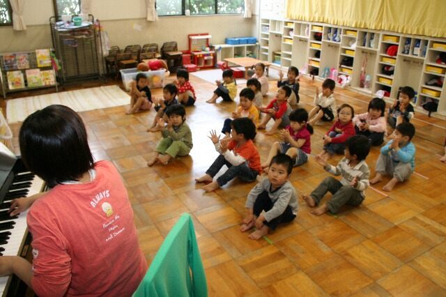 今日は年中さんだけでホール説明がありました。昨日は運動場でしたが今日はホールでの遊び方のおさらいです。「舞台に乗らない」「おもちゃを投げない」などはみんなもうバッチリで何故いけないのかも答えてくれました。大きなブロックの遊び方では、どれくらいの高さまで重ねるのはOKかや、ブロックの上に乗る時は重ねないように…といった約束事はみんなで決めました。自分たちで決めたルールなので、子どもたち自身も意識して遊んでくれたらいいなと思います。 |