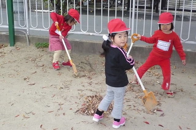今日は作品展のサーカス作りの後に時間があったので子ども達に「何しよっか?」と考えていると「外行こう!!」という案が出たので、急遽外遊びにしました。「色おにごっこ」か「大根おにごっこ」の多数決で「大根おにごっこ」をすることになりました。最近、お部屋の中で活動することが多かったので、まずは準備体操とジョギングで体を慣らしてからスタートです。運動場にかわいらしい大根がたくさん出来ては抜かれを大忙し!!中盤くらいから「先生、暑い〜!!脱いでいい?」「裸足になってもいい?」と子ども達はゲームが進むにつれ、どんどん真夏の格好に…。11月下旬の光景とは思えないです。気付けばあっという間に給食の時間です。「お部屋帰ろっか」の声に大ブーイングを浴びながら、お部屋に戻りました。久しぶりの外あそびに子ども達は大ハッスルできたようでした。そんな様子を見て行事のため保育が一定になってしまっていた事に深く反省しましました。少しの時間でもリフレッシュできる時間を確保できるよう心掛けたいと思います。 |