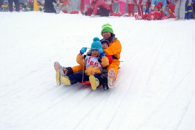 ニット帽にスノーブーツで登園した子どもたちはまだちょっぴり眠そうな表情でゆっくりと行動していました。残念ながら全員揃って参加することは出来ませんでしたが、みんなの方から「残念やなぁ」「31人で行きたかったなぁ」と優しい声が聞けて嬉しく思いました。行きのバスでは、はじめなかなか元気が出なかったひまわりさんですが、クイズをするうちに外にチラチラ雪が見えると「雪や〜!」と大はしゃぎ。目をキラキラさせて窓にはりつく子どもたちはとっても可愛かったでし。そしていよいよゲレンデへ…。バスからおりると「うわ〜寒いなぁ〜」と顔を真っ赤にしていましたが、表情はウキウキ。ゼッケンをつけ、ソリのすべり方の説明をしてさぁスタート。まるでジェットコースターにのったかのように、「うわぁ〜」「きゃぁ〜」と言いながらすべる子どもたち。何度も何度もすべって「先生ロケットくらい早いなぁ!」と、とても楽しんでいました。しばらくすると、雪のかたまりで遊んだりするお友達もいました。そして、すべり終え写真を撮ろうとすると…、今まで体を動かして楽しかったけど急に落ち着いて寒くなったのか、「寒い〜」「手が凍る〜」「手袋はめられ〜〜ん」と泣いちゃったお友だちがちらほら…あらら…。でもそんな子どもたちも可愛かったです。そしてバスに戻っておひるごはん。くつ下をはきかえると「あ〜あったか〜い」とまるでおじいさんおばあさんのような声が聞こえてきて思わず笑ってしまいました。帰りのバスでは半分くらいのお友だちがスヤスヤ…。今日はきっとぐっすり眠れることでしょう。林先生はじめ付き添って下さった先生方、お手伝いをして下さった役員委員のみなさま、健康管理をして下さった保護者のみなさま、本当にありがとうございました。また一つひまわりぐみさんとの楽しい思い出を作る事ができました。 |