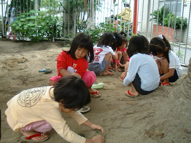 昨日の夜、ものすごい大雨で、雷もピカピカゴロゴロ鳴っていたという話を子ども達にすると、みんなも「知ってる〜、ゴロゴロしてたなぁ恐かった」と、その時の事を思い出しながら、少し恐そうな顔で話していました。子ども達の会話を聞いていると、雷に対するイメージがいろいろ違っていて、面白かったです。雷さまがいて、おこっているのだとか、鬼が来たのだとか、花火と同じようなものだと思っているなど、いろいろでした。また、雷さまは山に住んでいて、「今日はもう山に帰ってん」と言う子もいました。イメージはそれぞれに違ってあるようでしたが、共通して言えるのはみんな雷さまは「恐い!」と思っていることでした。これからの季節、昨日のような激しい雨や雷の日が、どんどん増えてくると思うので、ジメジメ蒸し暑くて嫌ですが、今日のような良い天気の日には、外で思う存分遊べるようにしたいと思います。 |