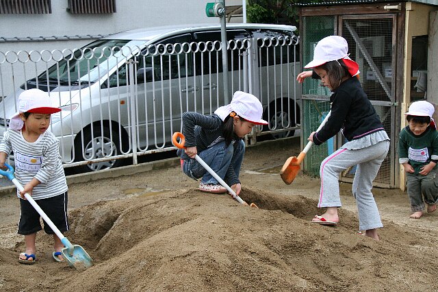 年少さんは山本公園に散歩に行きました。年中・年長は久しぶりに10時30分まで全体保育だったのでゆっくり遊ぶことが出来ました。ホールではぬいぐるみを赤ちゃんにして「寝ているから静かにして〜」とみんなで家族ごっこを楽しんでいました。給食後もいい天気だったので、たくさんの子が運動場で遊べました。 |