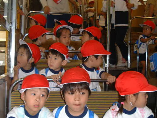 2回目の信貴山ケーブルハイキング。今日はちゅうりっぷ組とばら組でした。火曜日の1回目行った時、かなり暑かったので朝から何かいいアイデアがないかと1人で考えていました。『お弁当を食べるときブルーシートで屋根を作る事はできないかな…それは無理』昨年までは5月に行っていたので、このような心配はなかったのですが、今年は6月に入り急に暑くなったので何とかできないものかと思ったわけです。結局崖の横の階段を上がり、屋根のある所でたべさせてはどうかと、ハヤピーからのアドバイスで出発しました。ところが着いてすぐに崖の横を見に行ったのですが、年少さんにはこの階段は危ないという事がわかりました。そこでケーブルの駅員さんにお願いして、切符売り場の前の屋根の下を貸してもらう事にしました。これで何とかゆっくり陽のあたらない所で子ども達も食べることができます。快くOKしていただけたので本当にラッキーでした。崖のぼりでは年中さんが先に登ってくれるので、年少の子ども達もあまり恐がらずに登ることができました。今日もお母さま方にたくさん助けていただきました。本当にありがとうございました。 |