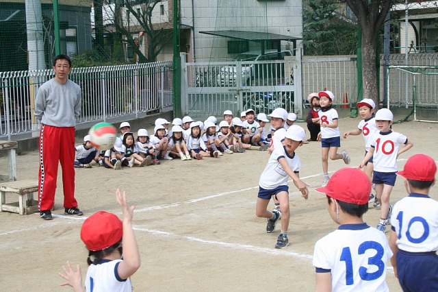 「最後のみんなで頑張るドッヂボール大会だから力一杯頑張ろう!」「一回負けたらどうする?」「負けても、次、諦めんと頑張るねん!」とみんなの気持ちはお部屋の中から一つになっていました。そしていざ試合が始まると少し緊張気味でしたが、だんだんリズムが出て上手に流れ出し1回戦は勝つことが出来ました。それからも益々クラスがまとまり始め2回戦3回戦と3連勝になりました。最後の4回戦「最後だからもう一回気持ちを一つにして頑張ろう!」と声をかけ、コートに子ども達を送り出しました。 |