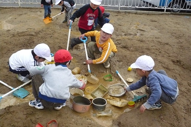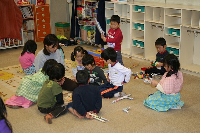 5月、まだみんなは年少気分満々だった頃に作ったこいのぼりを使って遊びました。久しぶりにお部屋に戻ってきたこいのぼりを見て「目ハートにしたんやったな」「キラキラで模様つけたわー」と懐かしいようでした。始めはトンネルにしてあそび、次はホールからマットを運んでこいのぼりの中に入れてあそび、最後は粉々になるまでちぎりました。ちゅうりっぷぐみのこいのぼりはオレンジ色なので、ちぎるとお花畑のようになり、お花畑にダイブしたり泳いだりしました。みんな(宮本先生も私も)夢中になってあそんでいたので、気が付けばお弁当の時間でビックリでした。いっぱい散らかした分お片付けは大変でした。 |