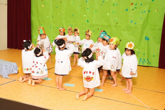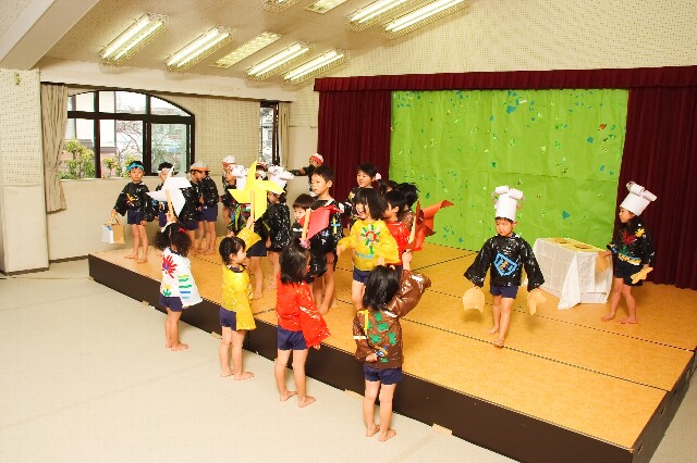一年の集大成の生活発表会でした。各クラス先生と子どもの個性が、また関係が見事に出ていました。先生も子どもも緊張しやり終えた、すがすがしさ達成感が体中にしみていたと思います。そして今日の一番のお客様である保護者の方々の反応が舞台を一段と盛り上げていました。保護者の方の暖かいまなざあい声援が、子どもたちの頑張りになっていました。見てもらうことがこんなにも子どもたちの励みになるのかと実感しました。生活を子どもの成長を支えているのはやはり親御さんであり、おじいちゃんおばあちゃん、多くの家族の方、その土台があって園での子どもの姿になるのですね。 |
