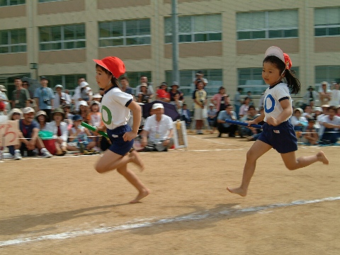 今日も運動場では年長さんがリレーを楽しんでいました。チームや走る量など、走る度に話合って決めているようです。一生懸命走る姿と、お友だちとたくさん笑い合う様子が、見ているだけの私もとても楽しませてもらいました。 | |