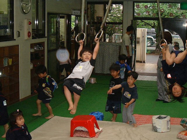 今週に入り、少しずつ幼稚園に慣れ活発になってきた子ども達。とっても楽しそうにしてくれているのは嬉しいのですが、動きが大きくなり“あぶない!”という事が多くなりました。そこで今日はもう一度、幼稚園でのお約束というのをみんなで考えてみました。「『お部屋や廊下、中庭を走り回る』これはどうかな?」と聞くと「あかん!」「だめ〜」と言ってくれます。「どうして、だめかな?」と聞くと「お友達とぶつかってけがをするから」と言ってくれます.その他にもおもちゃを投げたり蹴ったりというのも同じです。みんな落ち着いて考えるとしてはいけない事だとわかってくれてくれているのが、ついつい遊びが夢中になると忘れてしまうようです。そこで「忘れてしまっているお友達がいたらどうしよう?」と聞いてみました。すると「教えてあげる」などと答えてくれました。自分だけでなくお友達にも声を掛け合いながら楽しく幼稚園での時間を過ごしていけるといいなと思います。 |